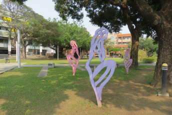 作者採用不鏽鋼及氟碳烤漆,藉此增添色彩的多樣性,突破傳統印象中花的既定 樣式,轉而採用女性肢體為擬人的寫實外框,以此說明花和女人之間的共通性。以抽 象化的鏤空線條,打破原本材質的限制,營造穿透式的空間感。若從不同的角度觀 看,外框所框住的「視界」,隨著觀者移動的腳步,亦隨之更改,就如同人在思考 時,腦海中不斷更換的場景。